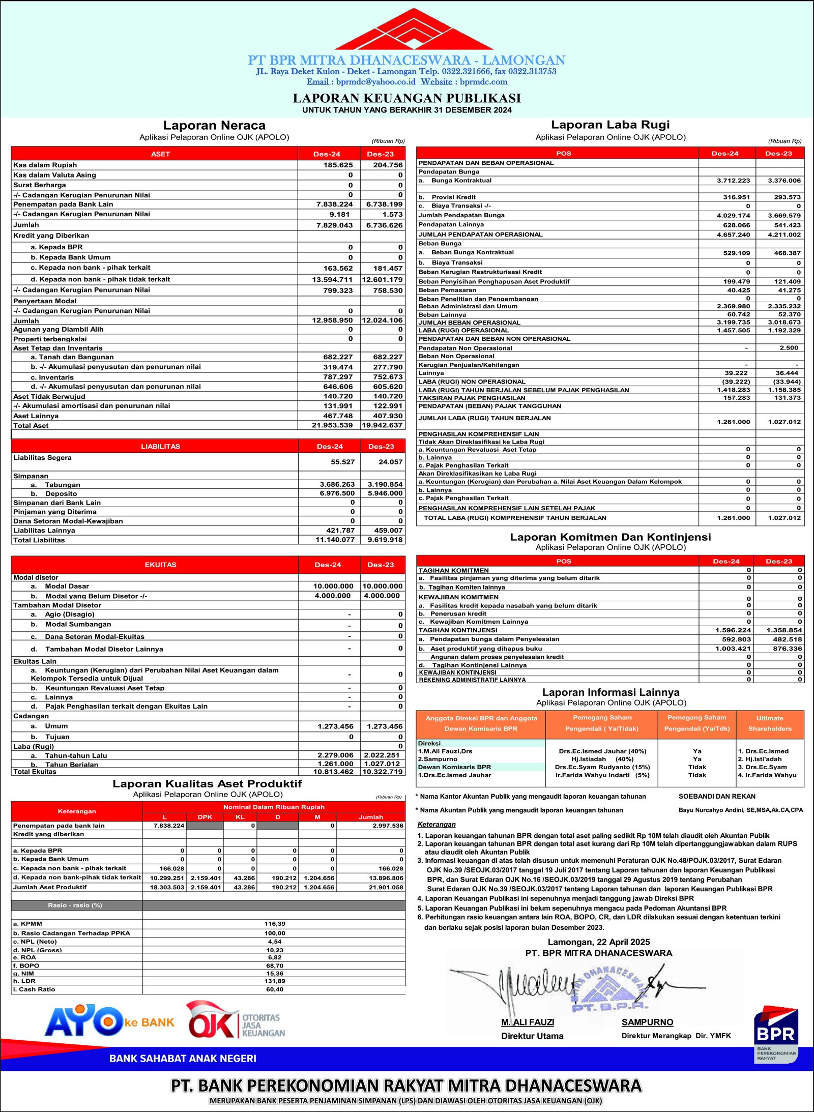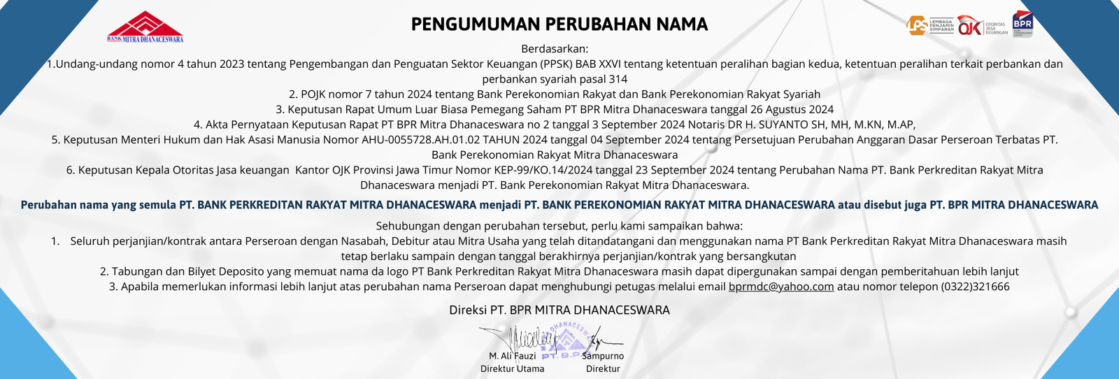 PT BANK PERKREDITAN RAKYAT Mitra Dhanaceswara Berizin dan diawasi oleh OJK Indonesia